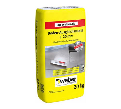 Die Weber Boden-Ausgleichsmasse ist eine schnell belegbare, selbstverlaufende Ausgleichs- und Spachtelmasse, die mit einer Schichtdicke von 1 - 20 mm manuell eingebaut wird. Das Aufbringen aller üblichen Oberbeläge ist möglich. Für den Innenbereich geeignet.