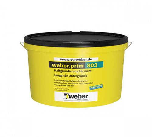 weber.prim 803 ist eine einkomponentige Haftgrundierung mit hoher Verbundhaftung auf glatten Untergründen im Innenbereich. Sie kann auf Holz und glatten, nicht saugenden Untergründen, wie z.B. alten Fliesen-, Platten- und Natursteinbelägen, Beton, Kunststoffbeschichtungen, alten PVC-Belägen und dichten Farbanstrichen eingesetzt werden.