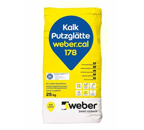 weber.cal 178 Kalk-Putzglätte zur Herstellung streich- und tapezierfähiger Oberflächen im Innenbereich auf weber.cal Kalkunterputzen und weber.dur Unterputzen.