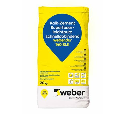 weber.dur 140 SLK ist ein beschleunigter, besonders ergiebiger, mineralischer Superfaserleichtputz Typ II für innen und außen. Er ist besonders geeignet für hochwärmedämmendes Mauerwerk mit niedriger Festigkeit z.B. Leichthochlochziegel oder Porenbeton.